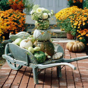 Тыквами украшают столы и лестницы, включают в интерьерные ансамбли и флористические композиции, декорируют венки, подсвечники и люстры. Ее можно разрисовывать или вырезать на ней узоры, без тыквы тяжело представить любую осеннюю композицию.