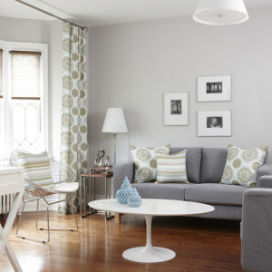 Вот так, на примере всего одного цвета мы попытались показать, как, учитывая особенности помещения, можно различать тона и оттенки. Любой цвет может стать теплым или холодным, приобрести необходимую вам насыщенность и сочетаться с любым другим цветом. Это лишь вопрос вашего тонкого восприятия и подхода. Почаще тренируйте свое ощущение цвета, сравнивайте белый с другим белым, серый — с другим серым, и это понимание с каждым днем будет все лучше.