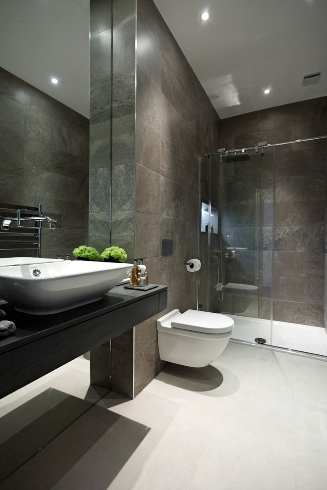 У ванных комнат с преимуществом темных тонов в облицовке поверхностей, также есть свои поклонники, которые знают цену добротности и уникальности. Атмосфера санузла, выполненного в темных оттенках, вызывает смешанные чувства и, подчас, длительное время положительно удивляет даже хозяев жилья.