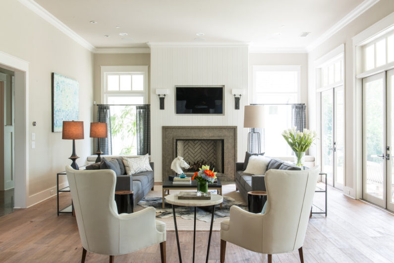 Обустраивая светлую гостиную, не старайтесь применить какие-либо оттенки одной гаммы (сливочные или бежевые, светло-серые). Так интерьер будет казаться хоть и легким, но скучным и слишком однородным. Лучше, если в помещении будут сочетаться светлые тона разных гамм цветов, например, сливочный и пастельный зеленый, песочный и небесно-голубой, натуральный белый и светло-серый. Один или два из них выберите в качестве основного, а остальные пусть станут дополняющими или создают мягкие акценты (мебель, аксессуары, текстиль)