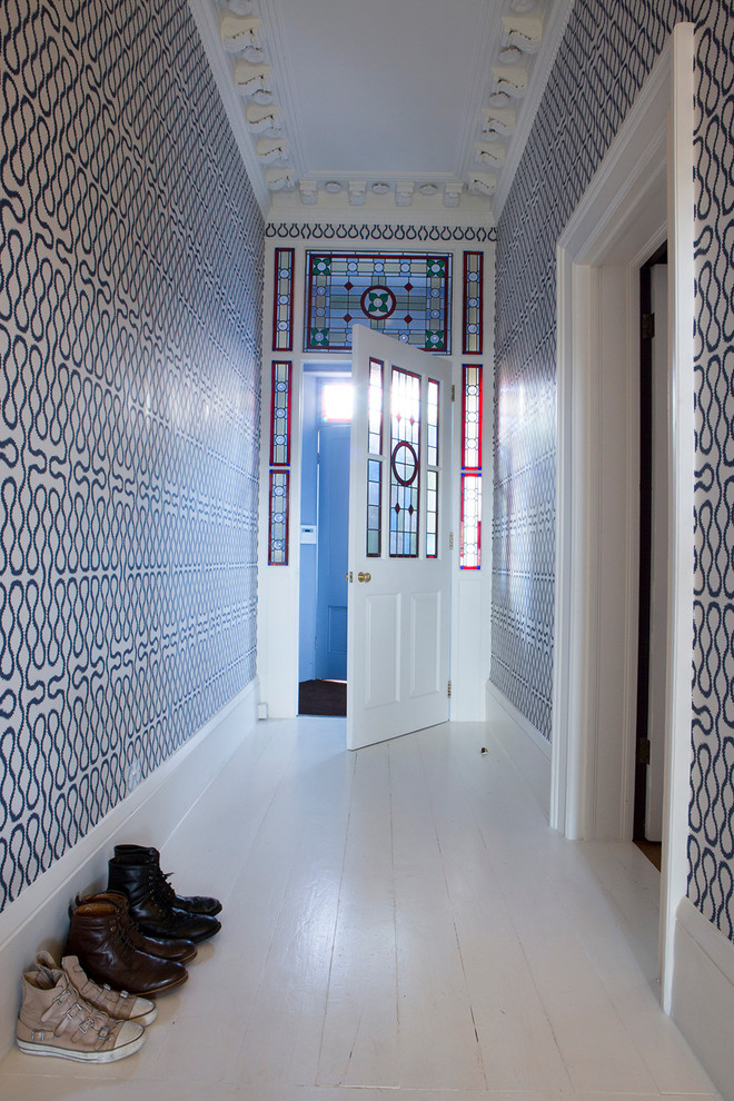 Если в качестве основного для интерьера прихожей будет выбран светлый оттенок (белый, кремовый, серебристо-серый), можно оттенить его с помощью акцентного узора плитки на полу, рисунка обоев на стенах или фактурного настенного декора. Так, даже скромных размеров прихожая сохранит свой объем, но станет более интересной и живописной.