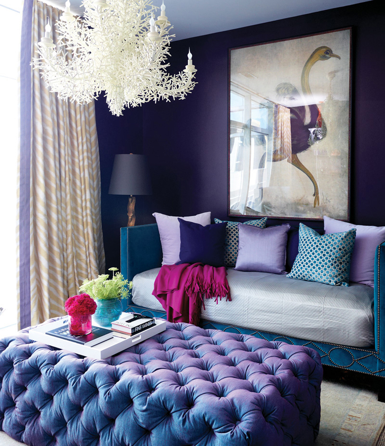 Для того, чтобы используя ультрафиолетовый цвет в интерьере, создать поистине незабываемый и уникальный образ, достаточно в качестве примера взять окрас оперения экзотической птицы. Например, колибри, потому как, в нем вы увидите сочетание этого цвета с оттенком чирок, изумрудным, лазурным, бирюзовым, зеленым, фуксией, ультрамариновым.