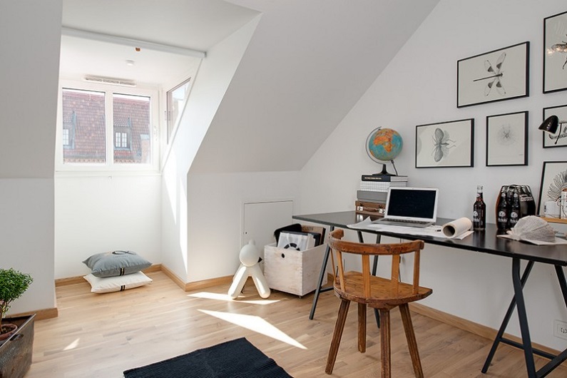 Скандинавский интерьер кабинета далек от привычного и понятного образа классического рабочего места, поэтому он вызывает множество эмоций и приятных ассоциаций. Нейтральное светлое окружение позволяет использовать предметы необычной формы, яркие цвета и весьма оригинальные аксессуары.