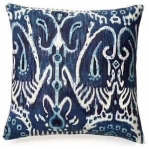 Икаты прекрасно комбинируются между собой, так как у них очень похожие мотивы. Нужно только подобрать сочетающиеся между собой цвета, и можете смело добавлять в комнату разные подушки, шторы и другой текстиль с орнаментом икат.