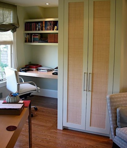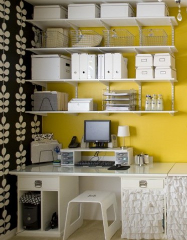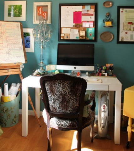 Если вам не удалось найти себе укромное местечко, не беда. Домашний офис можно разместить в любой комнате, важно использовать мебель и цвета подходящие под общий стиль комнаты, тогда он не будет казаться “чужим”.