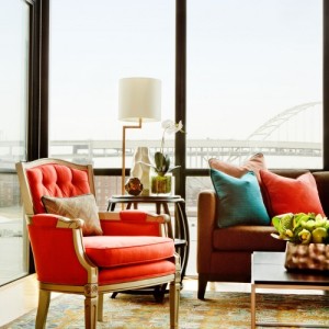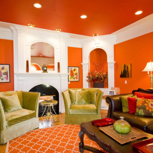 Огненно-яркие оранжевые оттенки — самые насыщенные и смелые для применения в интерьере. К ярким оттенкам относится апельсиновый, мандариновый, янтарный, мандариновое танго и коралловый. Эти оттенки хорошо сочетаются с оттенками зеленого, желтого и фиолетового.