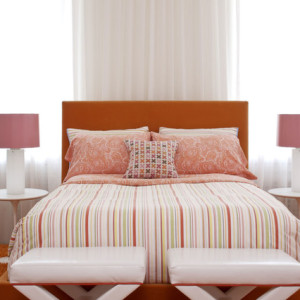 - Оранжевый цвет визуально увеличивает объем предметов: например, оранжевый абажур будет казаться более объемным, чем зеленый.