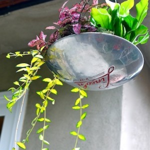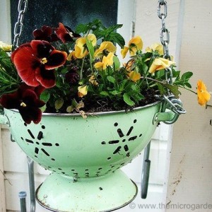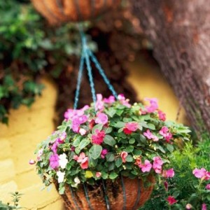 - Совет 3: Для корзинок, располагаемых в помещении, внутрь емкости иногда укладывают полиэтилен, чтобы не скапывала вода, но это создает угрозу залить растения. Лучшее решение – это поместить несколько горшков с растениями в водонепроницаемый контейнер. Сам контейнер можно подвесить на проволоке, веревке или бечевке к потолку. Принцип такого размещения аналогичен цветочнице, которая описана в статье о домашнем мини-саде.