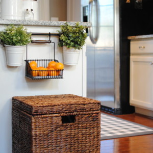 - Совет 6: Подвесить корзинку лучше таким образом, чтобы до нее можно было достать рукой, то есть на уровне вашего роста. Если такой вариант по каким-то причинам невозможен, то тогда воспользуйтесь не простым крючком, а карабином, такая конструкция позволит поднимать и опускать емкость.