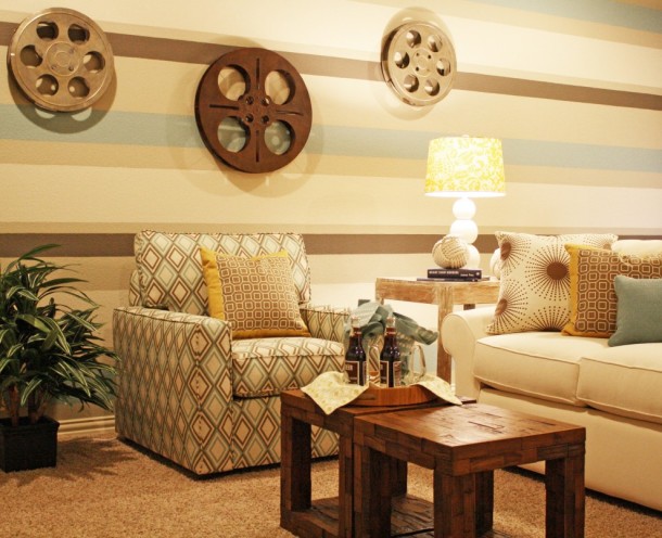 2. Полосы разной ширины и расцветок делают комнату жизнерадостной и акцентируют внимание ваших гостей. Не используйте больше трех расцветок, иначе интерьер будет перегружен.