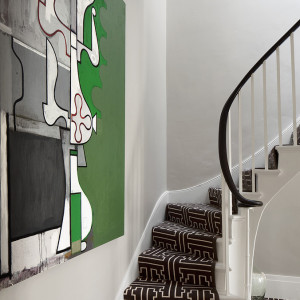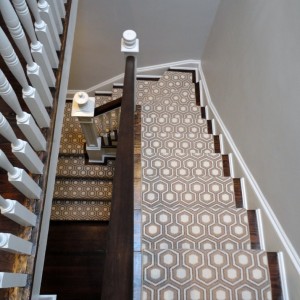 Ритм самого орнамента также очень разный — кольца разной величины, которые вьются между собой, треугольники разных цветов, ромбы разных размеров, квадраты, прямоугольники, и т.д. А еще сейчас очень популярны дорожки и ковры с геометрическими принтами. Ведь это очень простой способ освежить прихожую или коридор. Кроме того, ритмичный узор зрительно удлиняет пространство, благодаря чему, лестница или коридор выглядят бесконечными.