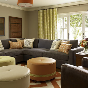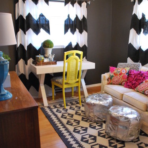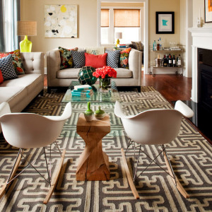 Оригинальная идея для зонирования помещения: дизайнер хотел разделить две зоны в гостиной с помощью гипсо-картоновой конструкции, и решил оформить разделительную линию ярким зиг-загом. Получилось ярко, стильно и свежо.