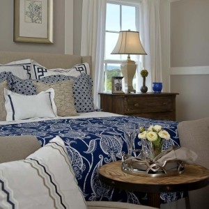 Все, что вам нужно — заранее обозначить несколько зон (желательно не более пяти), которые вы оформите в синих оттенках. Старайтесь их равномерно распределить по периметру комнаты, а не сосредотачивать в одном месте. Также помните о том, что цветовые пятна создаются габаритными предметами и большими площадями, поэтому присутствие синего в комнате не должно занимать менее 20% от общей цветовой наполненности комнаты.