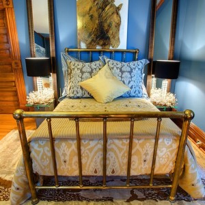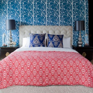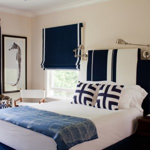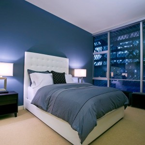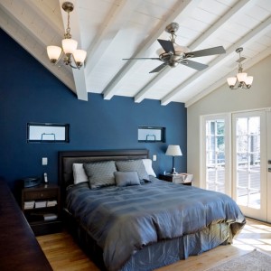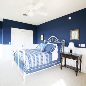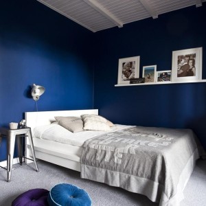 Попробуйте выкрасить в синий цвет только одну стену в комнате. Хорошо, если это будет та из них, к которой прислоняется изголовье — тем самым вы создадите правильный визуальный центр и убережете себя от слишком частого созерцания «активной стены» — соответственно, она вам еще долго не надоест.