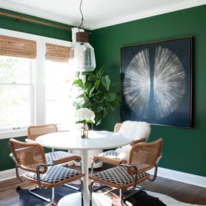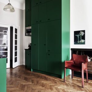 Малахитовый и кирпичный (красное дерево, шоколадный) оттенки относятся к цветам, которые не часто используются в тандеме, но их созвучие рождает поистине богемную атмосферу. Рекомендуется комбинировать данные оттенки в качестве акцентов на фоне расслабленной нейтральной палитры в прихожей, гостиной, столовой или кабинете.