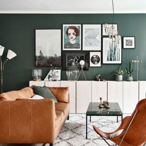 Красивый коричный оттенок в сочетании с бутылочным зеленым отлично подойдет для формирования теплой атмосферы в гостиной, кухне или спальне. Сочетание лучше дополнить сдержанным серым, белым, черными акцентами или ностальгическим оттенком сепия.