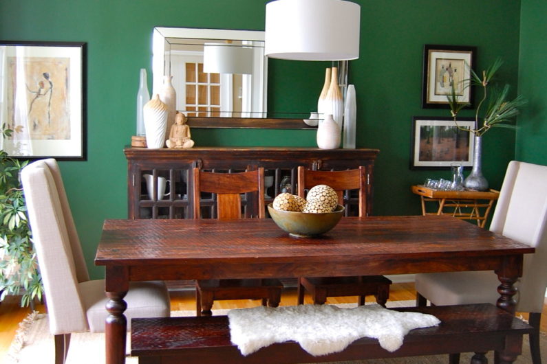 Данное сочетание цветов настолько универсально, что использовать его можно в интерьере любой комнаты без опасения сделать его «слишком». Важно лишь соблюдать баланс оттенков и насыщенность тонов, чтобы обстановка не стала напоминанием о непроходимых лесных дебрях.