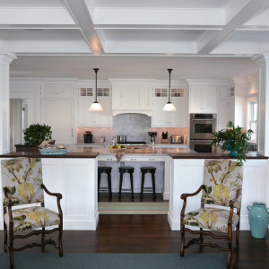 Потолок не привлекает к себе особого внимания, поэтому можете просто выкрасить его в теплые оттенки белого, молочного и бежевых цветов.