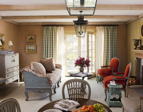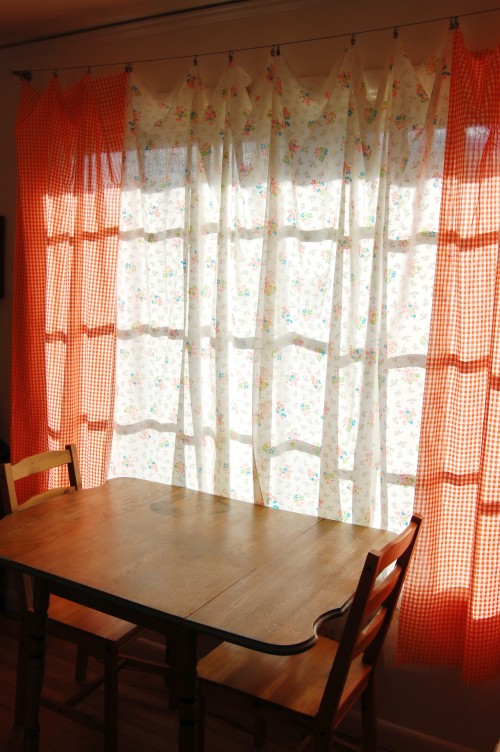 По той же причине, что и использование скатертей, гинем клетку можно часто увидеть на шторах или занавесках. Лучше всего использовать неяркие оттенки, хорошо сочетающиеся с другими цветами в комнате. Занавески с узором гинем хорошо будут смотреться в столовой, на кухне или в гостиной.