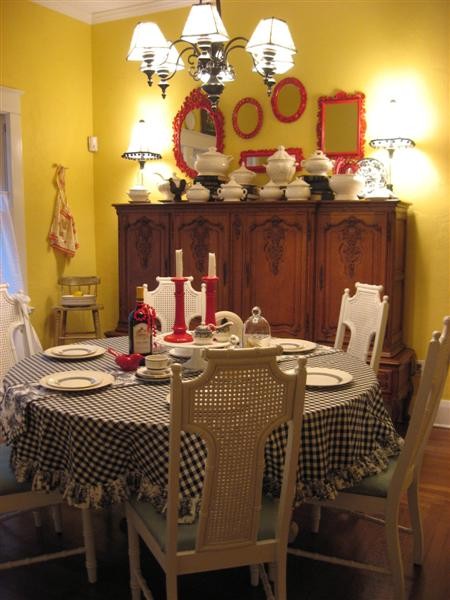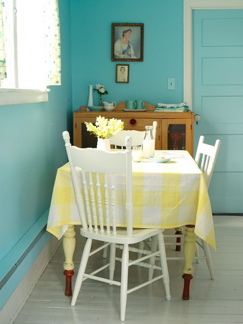 Многие фартуки и скатерти для барбекю изготавливаются с такими клетками, поэтому скатерти с гинемом в столовой вызывают ассоциации с пикником, свежим воздухом, отдыхом на природе.