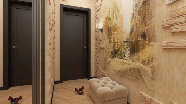 Обклеивать прихожие можно обоями в стиле 3D, не привязывая рисунок к общему интерьеру жилища. В этом есть плюсы и минусы. Существуют правила выбора рисунка обоев, с которыми надо считаться.
