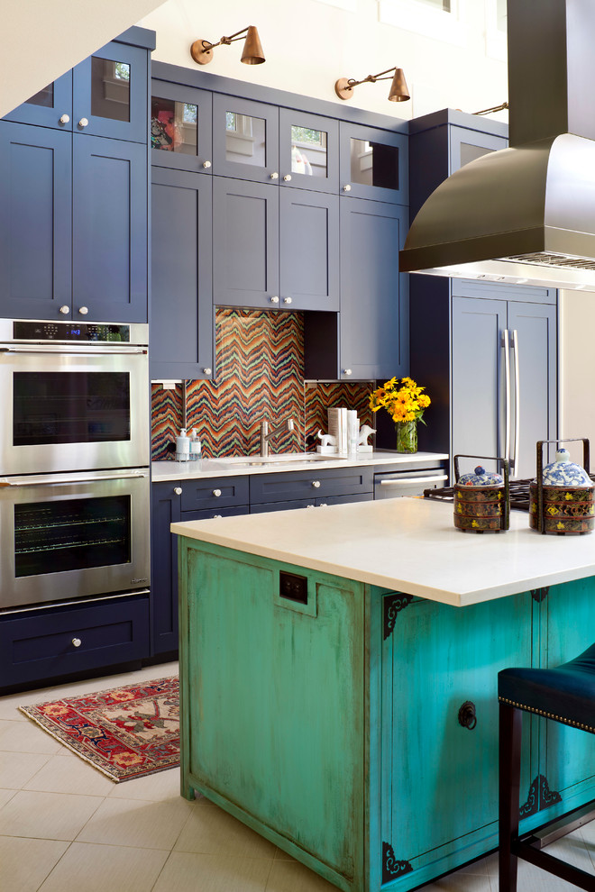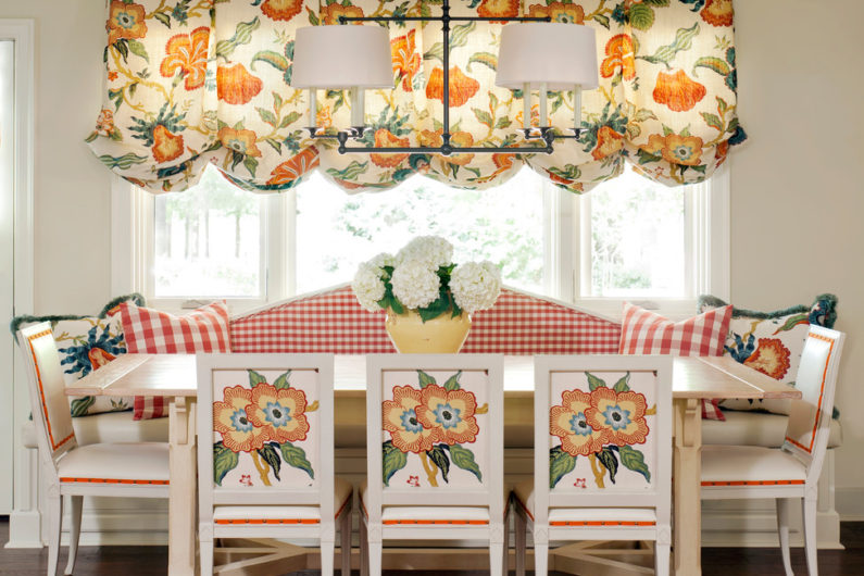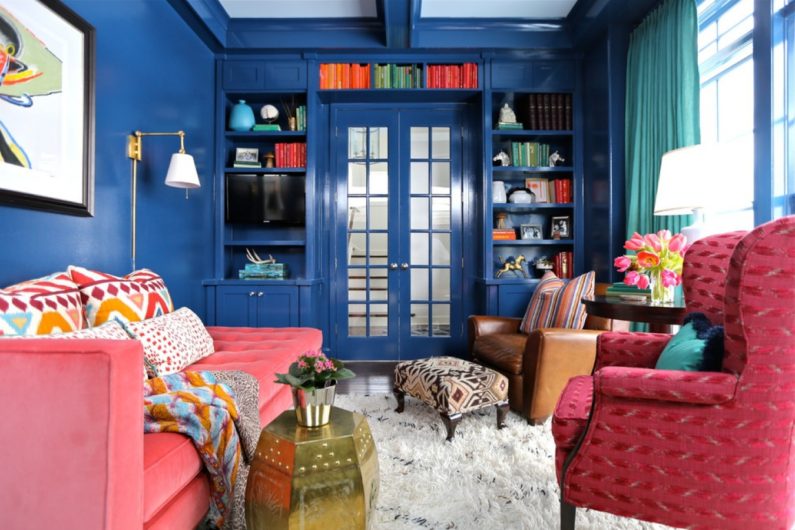 Выбирайте природные тона для мягкой мебели и фасадов шкафов, такие как: кобальтовый, коричный, фисташковый или травяной, охра или терракотовый. К тому же, не стоит делать выбор в пользу предметов и поверхностей с выраженным рельефом (резьба, фигурная фурнитура, лепнина). Помните: яркие рисованные узоры с лихвой компенсируют сдержанность силуэтов и декоративного наполнения комнаты.